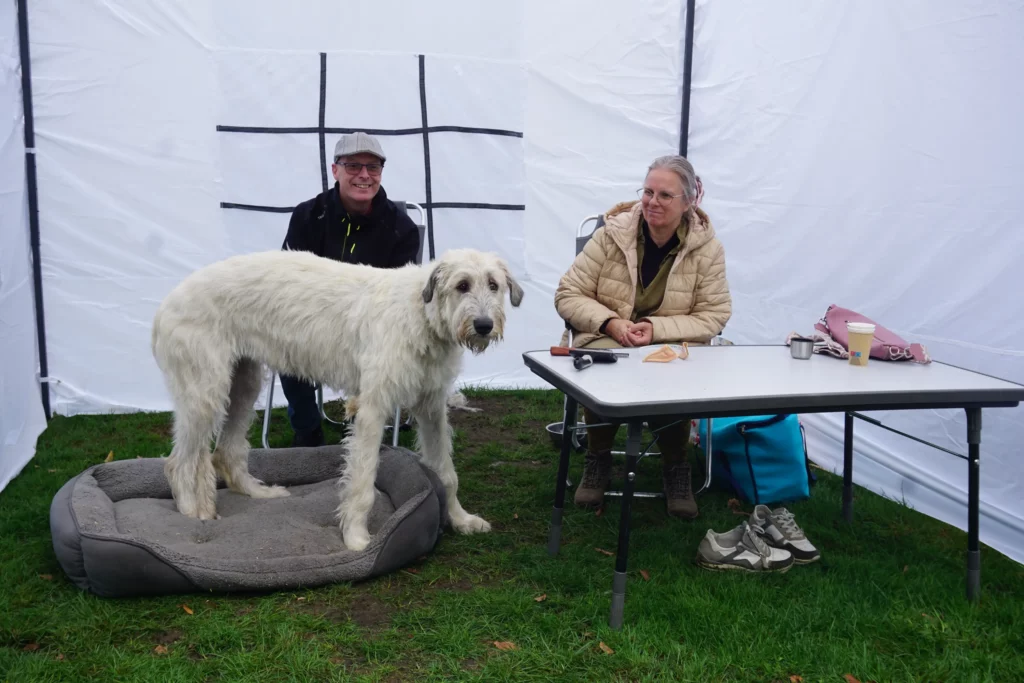 Appreciation of Wolfhound form and function has helped refine my work as a sculptor, for which knowledge of anatomy is essential. When I judge Irish Wolfhounds, I look for hounds who possess curves without exaggeration, and strength without coarseness, with an ease of movement which shows power and stamina. Typically, Irish Wolfhounds should give the impression that they could do the job for which they were originally bred. It’s all about maintaining balance and symmetry, when both standing and moving. A flying phobia prevents me from accepting many overseas judging offers. However in 2012, I was able to fulfil the kind invitation to judge the Belgian Club’s Junior & Veteran Day; a trip which I enjoyed enormously. I was invited to judge at your Championship Show in 2020, but this wasn’t possible due to the pandemic. So I’m delighted finally to be returning this year and looking forward to meeting you and your lovely hounds.